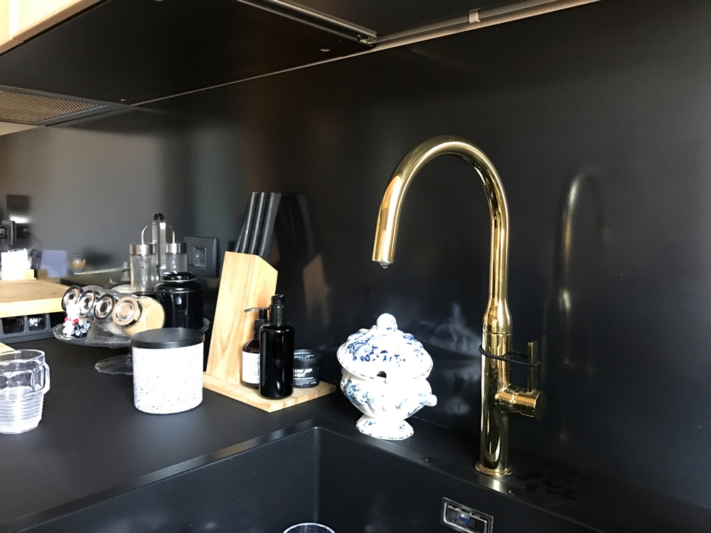 Pannello paraspruzzi per retro lavello cucina in stile industriale realizzato su misura.