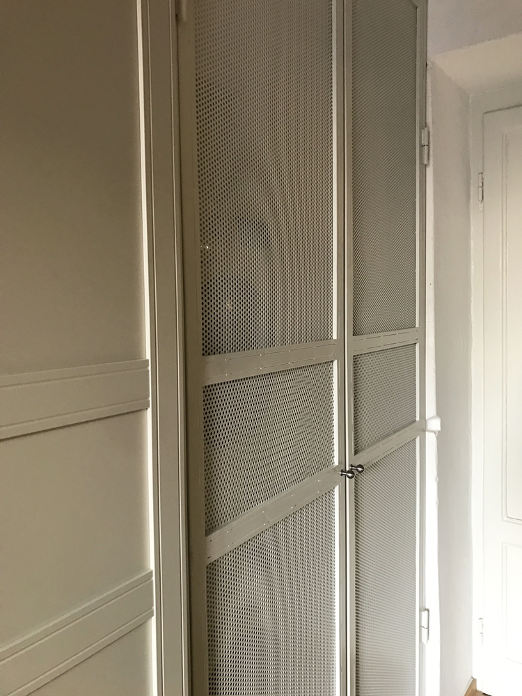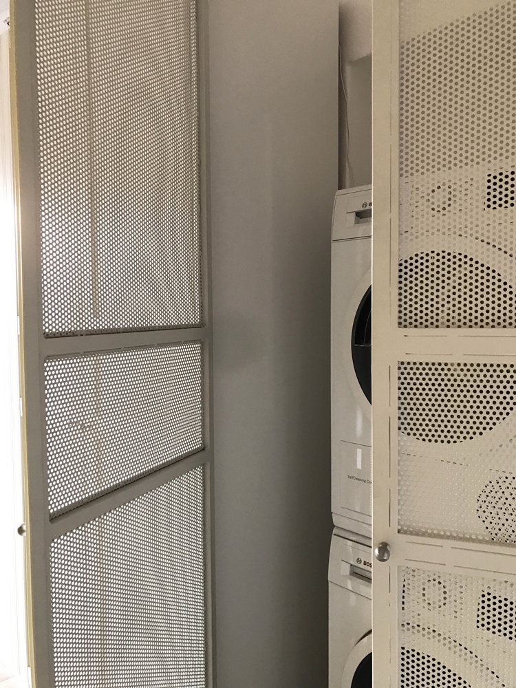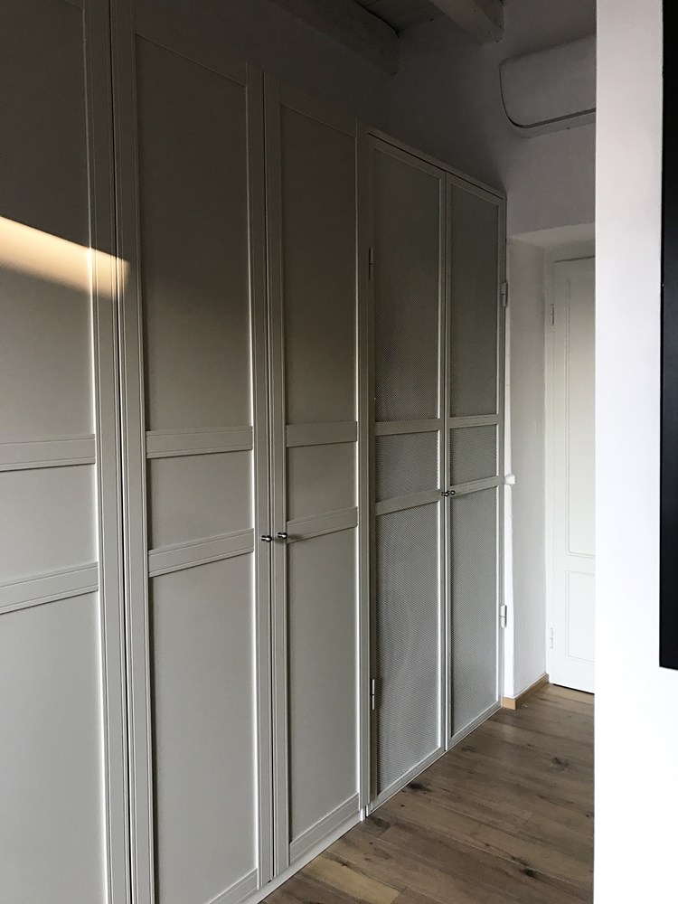 Installata al fine di chiudere alla vista la nicchia ad uso lavanderia, riprende il disegno del mobile guardaroba, nella divisione delle altezze e nelle maniglie.