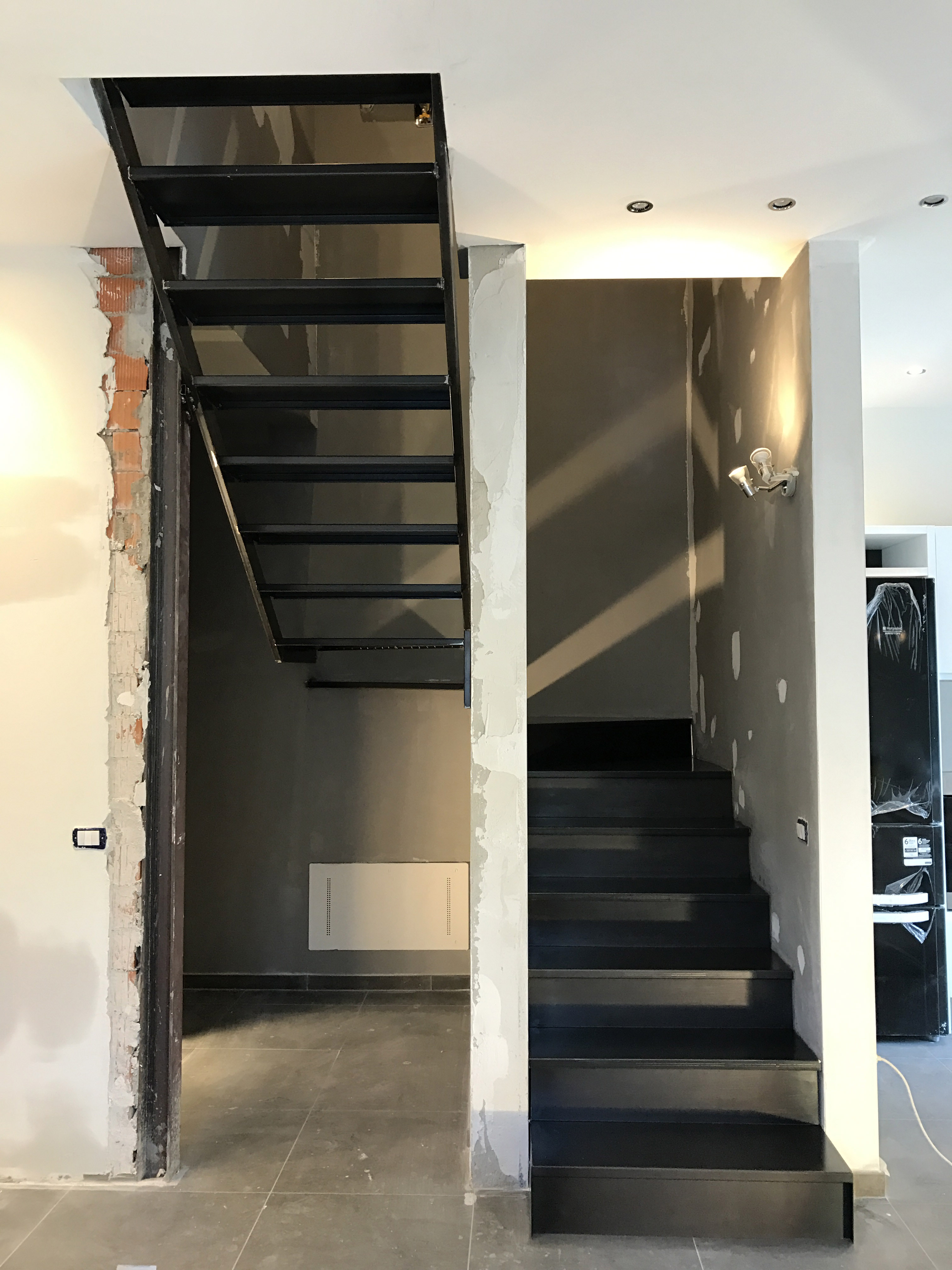 Scala in stile industriale con una rampa a giorno ed una con gradini chiusi.